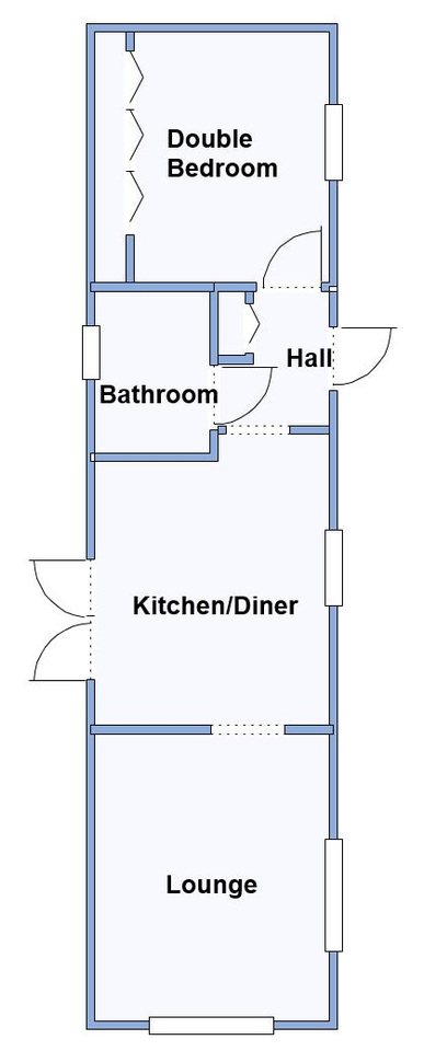 Kitchen/Diner: approx 11’1” x 9’1”max. Range of modern floor and wall cupboards. Built-in oven & hob with cooker hood over. Integrated fridge/freezer & washer/dryer. LED Spot lights. Ample space for dining suite. Double doors to garden.